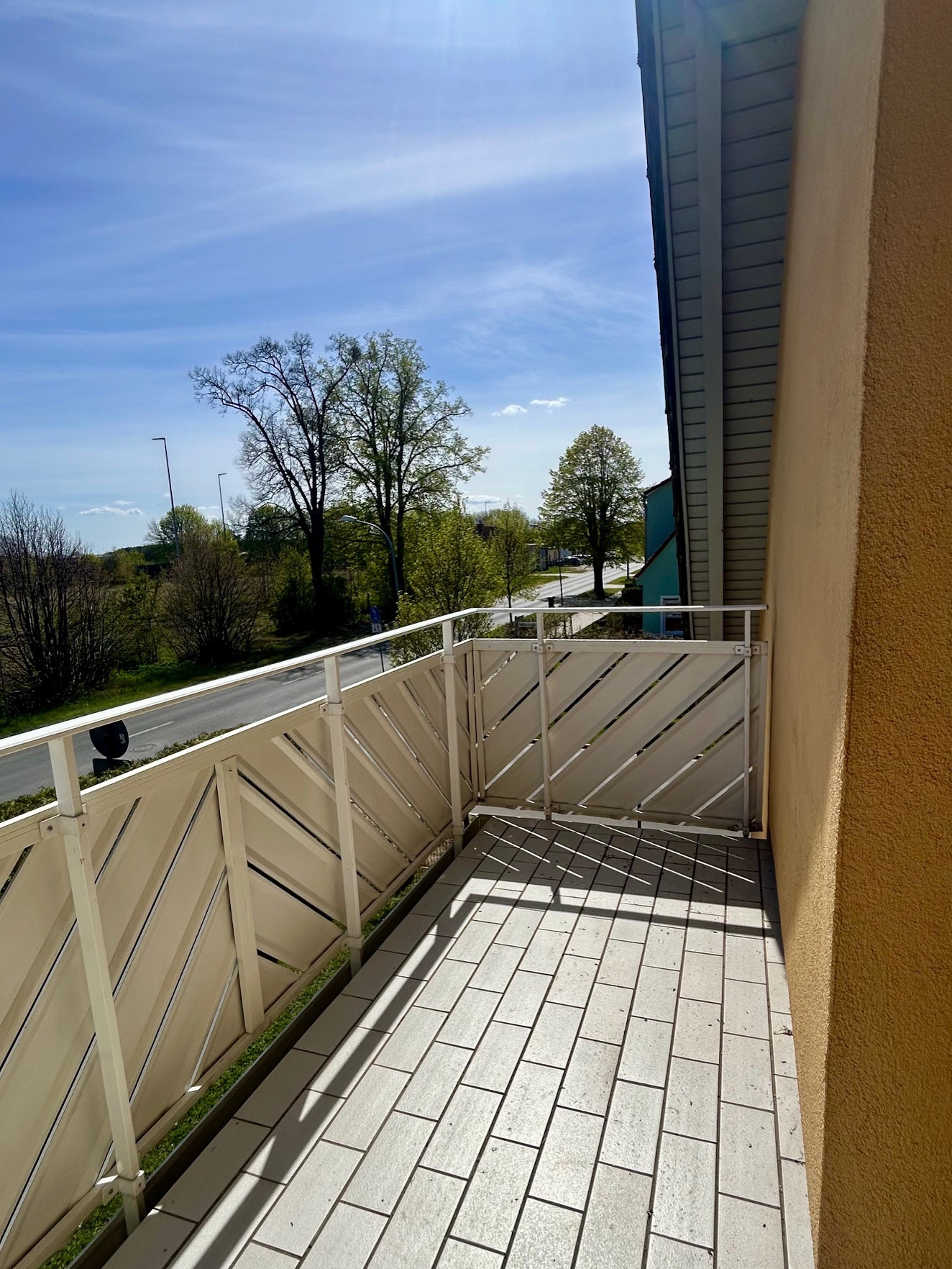 Ein Balkon bietet zusätzlichen Raum im Freien. Zur Wohnung gehört außerdem ein Kellerabteil, das praktischen Stauraum bietet.