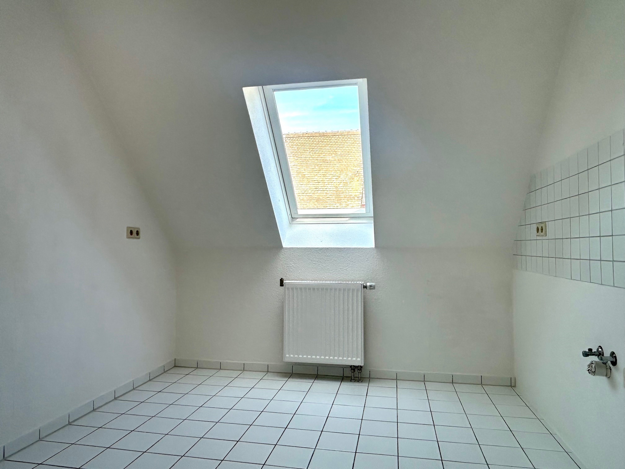 Die Wohnung liegt im Dachgeschoss und überzeugt durch eine durchdachte Raumaufteilung sowie helle, freundliche Räume. Sowohl die Küche als auch das Badezimmer verfügen über ein Fenster und sorgen damit für viel Tageslicht und gute Belüftungsmöglichkeiten. Das Badezimmer ist mit einer Badewanne ausgestattet und lädt zum Entspannen ein.