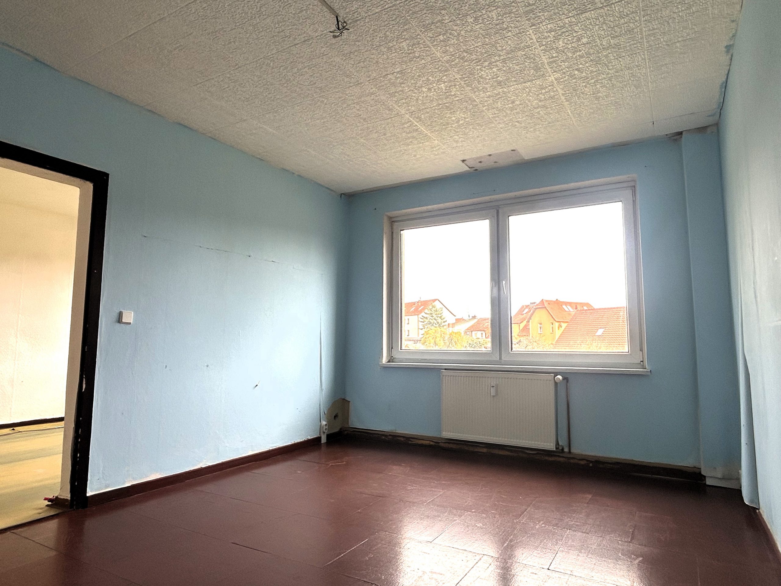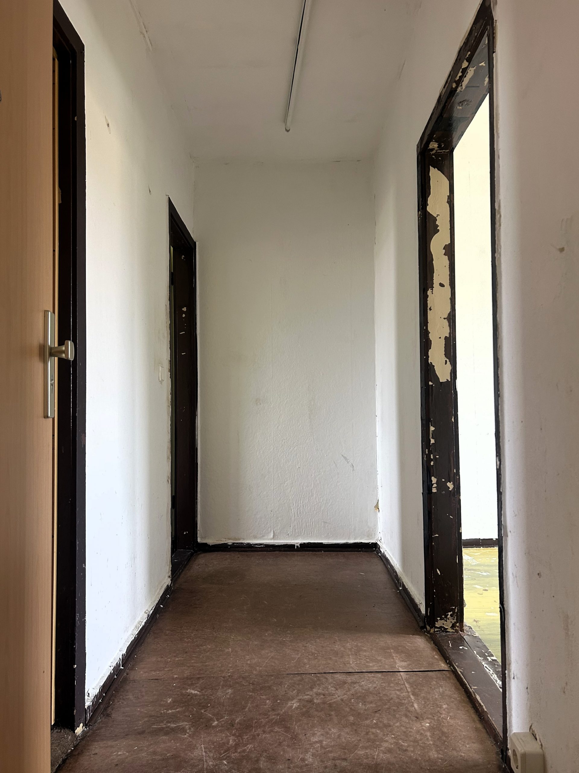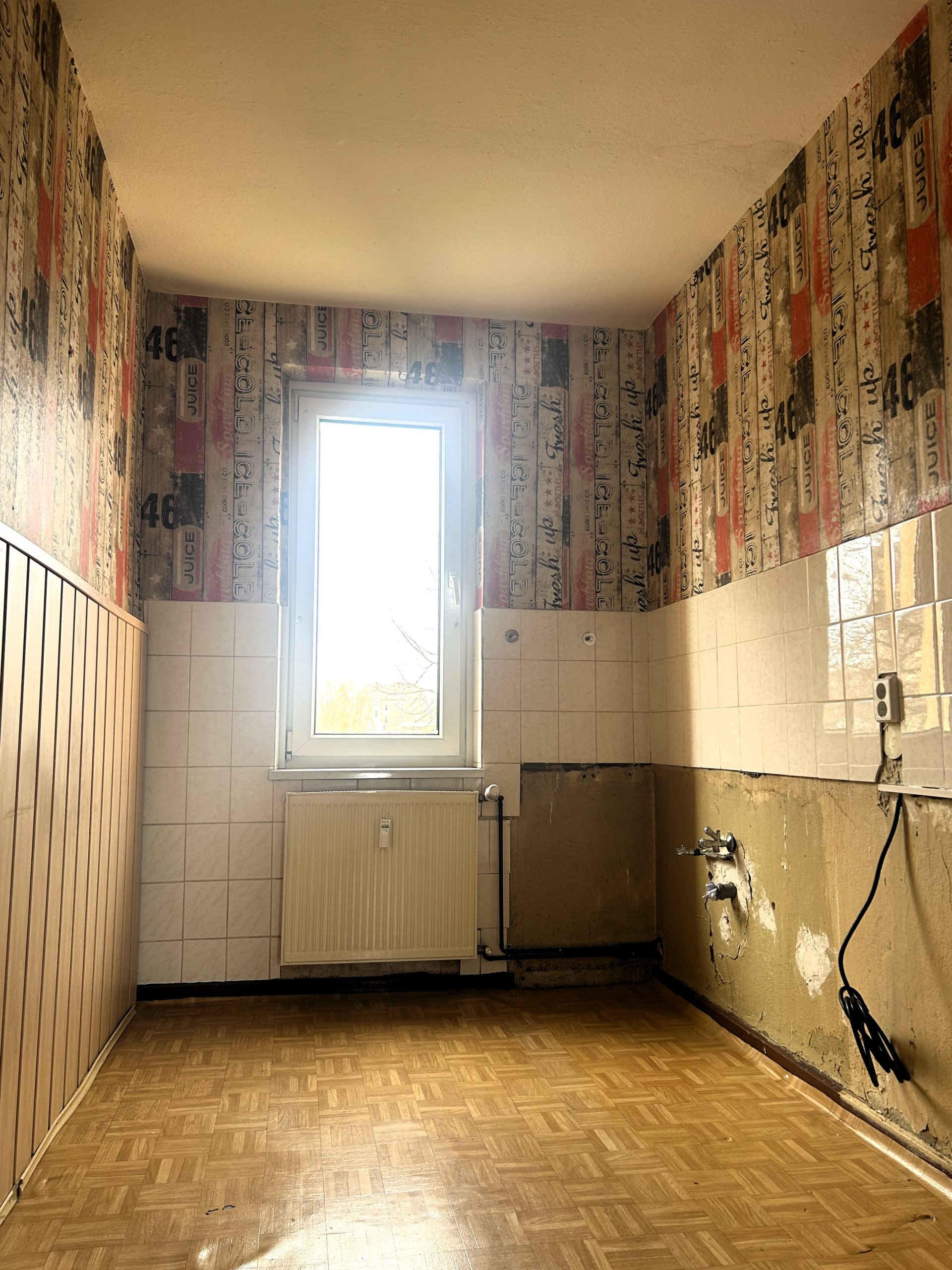 Die Wohnung befindet sich in einem stark renovierungsbedürftigen Zustand. Insbesondere die Bodenbeläge müssen vom Mieter selbst eingebracht werden, was Ihnen jedoch die Chance bietet, Materialien und Stil ganz nach Ihren eigenen Wünschen auszuwählen. Diese Gegebenheiten spiegeln sich in der sehr günstigen Miete wider.